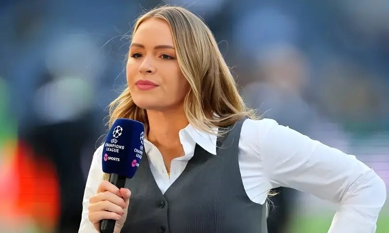 برطانوی ٹی وی پریزینٹر لورا ووڈز خواتین کے فٹ بال میچ کی پری گیم کوریج کے دوران لائیو نشریات میں گر گئیں۔