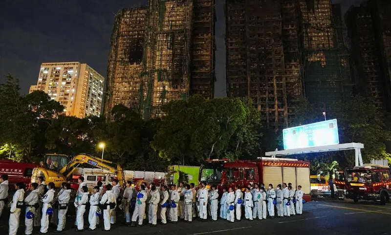 تائی پو کے رہائشی کمپلیکس وانگ فُک کورٹ میں لگی آگ نے آٹھ میں سے سات ٹاورز کو لپیٹ میں لے کر 128 جانیں لے لیں، جبکہ تقریباً 150 افراد اب بھی لاپتا ہیں۔ ابتدائی رپورٹوں کے مطابق آگ اسکیفولڈنگ جالی سے بھڑکی اور غیر محفوظ فوم پینلز نے شعلوں کو عمارتوں میں تیزی سے پھیلایا۔